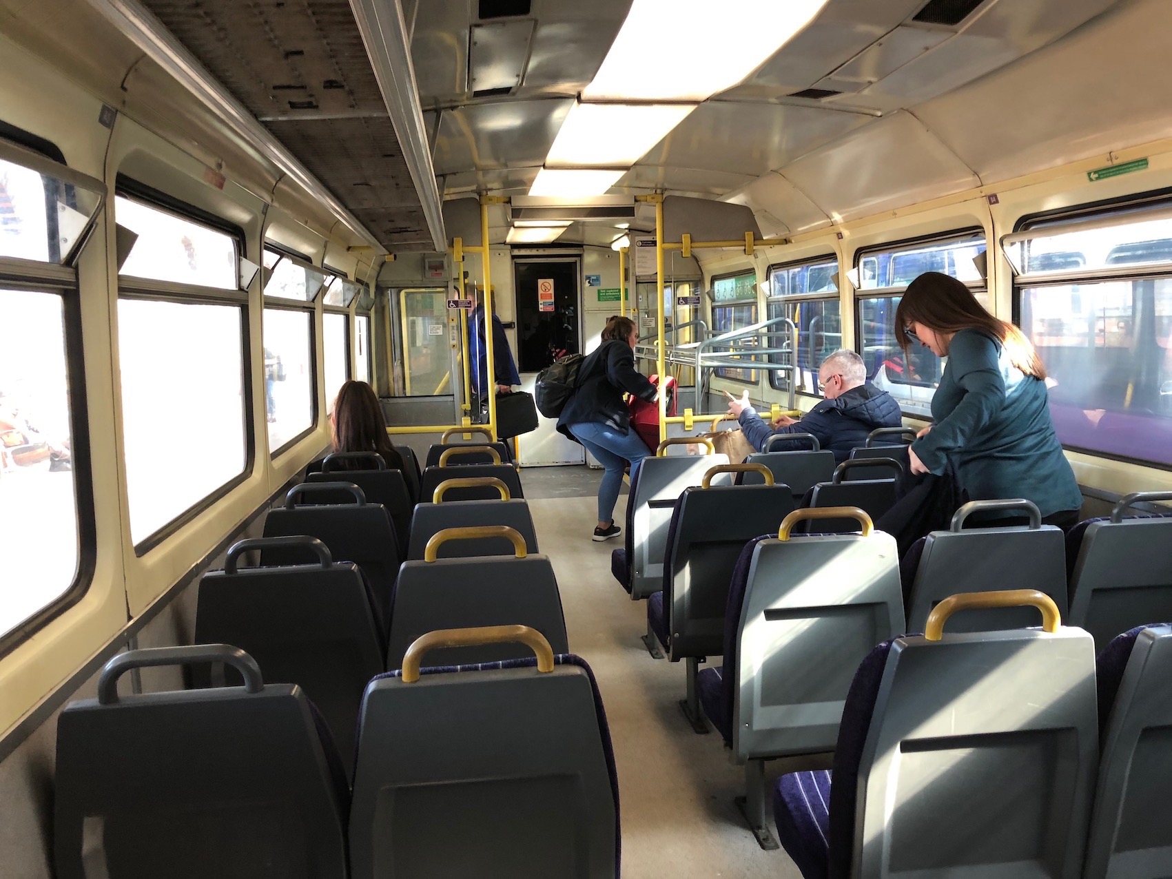 My first journey was from Manchester to Huddersfield. To be fair I could have taken the more usual Transpennine Express service and enjoyed their newer, if frequently overcrowded, trains but being a tight fisted Yorkshireman returning to God’s Own County I was particularly taken with Northern’s dirt cheap (£4.50, thanks for asking) advance fare. The journey was just five minutes longer thanks to the Pacer’s 75mph speed limit, a speed it only managed to reach after it had passed through the Standedge Tunnel high in the Pennines and started to go downhill, and the fact it had to stop at places like Mossley and Greenside. These are the sort of places the Pacer was made for. On boarding through the infamous bi-fold door I was greeted with an aroma that seemed familiar. Then I remembered – the 45 year old Antonov I’d flown on in Ukraine six months and many blogs ago smelled similar, that musty scent you often find in museum pieces. The seats that had replaced the original bus benches provided enough knee room for a dwarf with a growth defect but I got a couple to myself so spent a pleasant three quarters of an hour sitting sideways whilst being bounced around and deafened by the occasional squeal from the wheels. The second journey was a couple of days later from Huddersfield to Wakefield Kirkgate. Different seating made it a touch more comfortable and it was definitely less smelly but the rest of the Pacer experience was much the same.