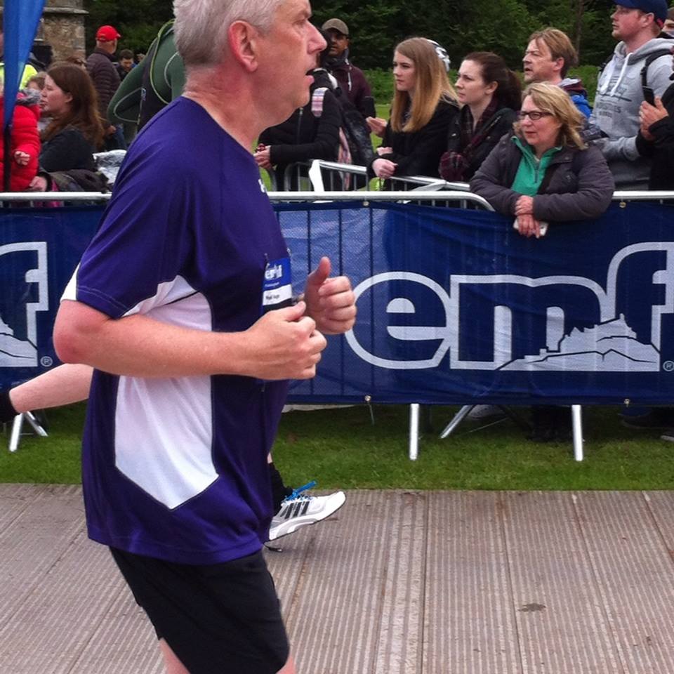 That race was a rarity in that I actually enjoyed the run. It seemed to go on for ever but being part of a large event like that and passing some iconic sites in London meant it was fun. Although running was now my primary source of fitness, my gym membership ultimately lapsing, it was nearly always a chore. I persisted with it though. I was sure the Grim Reaper awaited me if I didn’t. I competed in two other half marathons. In September 2012 I ran the Great Scottish Run in Glasgow. It didn’t go well. I hadn’t prepared well for it at all and only decided to run at the last minute. I completed it in a rather pathetic time of 2 hours, 20 minutes 30 seconds but at least I did it. I hated every second. By 2015 my daughter Rebecca had taken up running, and living in Edinburgh at the time had entered the Edinburgh Marathon Festival half marathon. I thought I’d give it a go too. Thanks to a better build up I finished in a time of 2 hours 10 minutes 44 second which I was quite pleased with. It wasn’t a particularly enjoyable run though. Starting in the middle of Edinburgh the route quickly passed the foot of Arthur’s Seat and then failed to pass anywhere of interest on its way out to Musselburgh where you had to run a mile up a road to nowhere before heading back down it to the finish in a nondescript park.