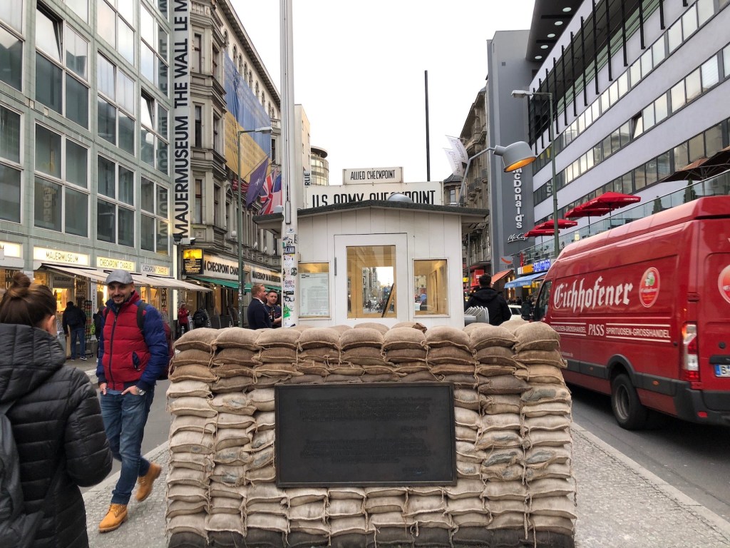 The public transport system is extensive and widespread and the chances are that your hotel will be close enough to a station or stop that staying central is not exactly vital. What constitutes ‘central’ though? The Brandenburg Gate probably takes that honour. It turned out that our hotel was just a ten minute walk to the iconic symbol of the city and a similar distance from Checkpoint Charlie, another icon, this time of the Cold War and division of the city. The area was ‘Mitte’ meaning ‘Middle’ which suggested we’d chosen a well situated hotel and indeed many of Berlin’s major attractions were close by. So what attractions to see? There are many. It turned out that on the weekend we were there was the thirtieth anniversary of the fall of the Berlin Wall. This was a big occasion for the once divided city of Berlin and indeed the entire once divided country of Germany. We spent the first afternoon wandering around the Mitte area and took in the Holocaust Memorial, Checkpoint Charlie and the Brandenburg Gate. The latter was cordoned off for the thirtieth anniversary party that was due to take place a couple of evenings later. The Holocaust Memorial is nearby and consists of over 2700 concrete slabs of various sizes. To my mind it didn’t really work as a memorial to the appalling slaughter of six million Jews by the Third Reich but others may disagree. There is a museum below the memorial which tells just some of the stories from that dark period of the twentieth century and it was that which brought it home to me rather than the monoliths. Checkpoint Charlie, a replica American guard booth stood at the former border between East and West Berlin serves as a reminder of another tyranny. The Checkpoint Charlie Museum is next to the guard post and has a wealth of information about the division of Berlin and the attempts, quite often fatal, of those who wished to pass from the totalitarian regime of Socialist East Germany to the freedom of the West. It is a fascinating place that opened not long after the wall was erected and has been telling its story ever since.
