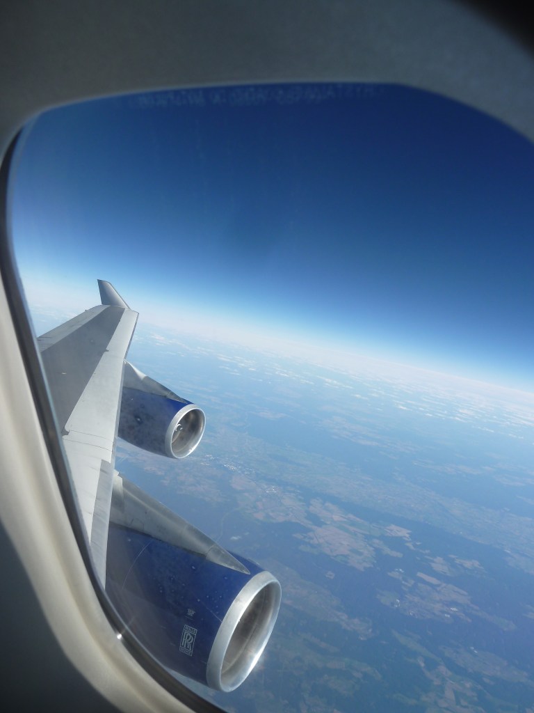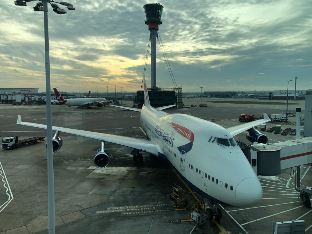 On the way back I had booked a Club World ticket (using Avios, I’m not so well off that I can go business class willy-nilly) and was hoping that they might upgrade me to First but no, I’ve obviously had my quota of upgrades. This time I had a window seat on the upper deck which was much better for a geek like me. It also meant a bit more privacy and plenty of storage space with a row of lockers beneath the windows. It is an ideal place to enjoy the 747 experience, mainly because you are facing rearwards and can see one of the magnificent wings and two of the four mighty engines that hold the beast aloft and allow it to hurtle through the air at Mach 0.85. (That’s fast by the way, not Concorde fast but you certainly wouldn’t want to get in the way of one) The upper deck consists of five rows of four Club World seats and feels more spacious and exclusive than the other Club World cabin down the stairs. I was all set for a restful red eye flight back to Heathrow when I noticed the four seats in the row behind were occupied by a family of five. Mum, dad, two small girls and a babe in arms. Oh good I thought. I know we were all babies and children once but when I was that age I never went in a plane, never mind the posh seats. We were too poor in Yorkshire tha nos. However, I need not have been so snobbish, the two girls were as good as gold and once the baby was plonked in a bassinet I never heard a peep from her. The dad on the other hand spent the entire flight getting up and down, accessing the several tons of hand luggage they had secreted round the cabin and generally faffing about. After a very acceptable dinner I had a quick look out of the window to see if I could see the aurora (I couldn’t) and settled down to sleep. I think I managed about four hours, a reasonable if unspectacular amount for an eight hour flight across eight time zones. We touched down on Runway 27R at Heathrow well ahead of schedule and made the short taxi to Terminal Three. Heading up the corridor I looked out of the window at the twenty-five year old 747 that had delivered my safely back to London. She still looked a beast. You may have noticed I’ve not used the ‘J’ word in this short epistle. I never liked the term ‘Jumbo Jet’. Yes, both are big but there the similarity ends. 747s tend not to be grey and wrinkly and don’t have a long manoeuvrable proboscis for a start. The Boeing 747 has since gained another nickname, not one that’s widely known outside of avgeek circles: Queen of the Skies. She may well be a big lump of a queen but a queen she is nevertheless. She’s the business. I’ll mis her when she’s gone.