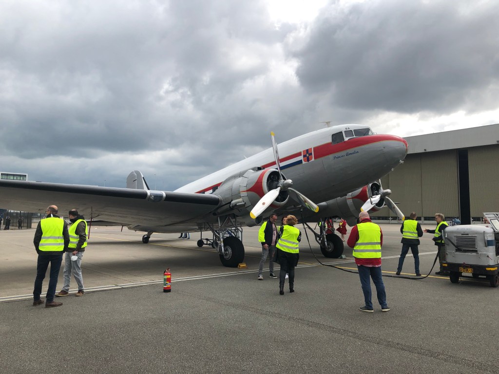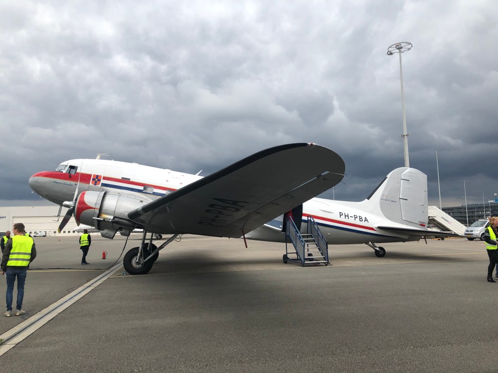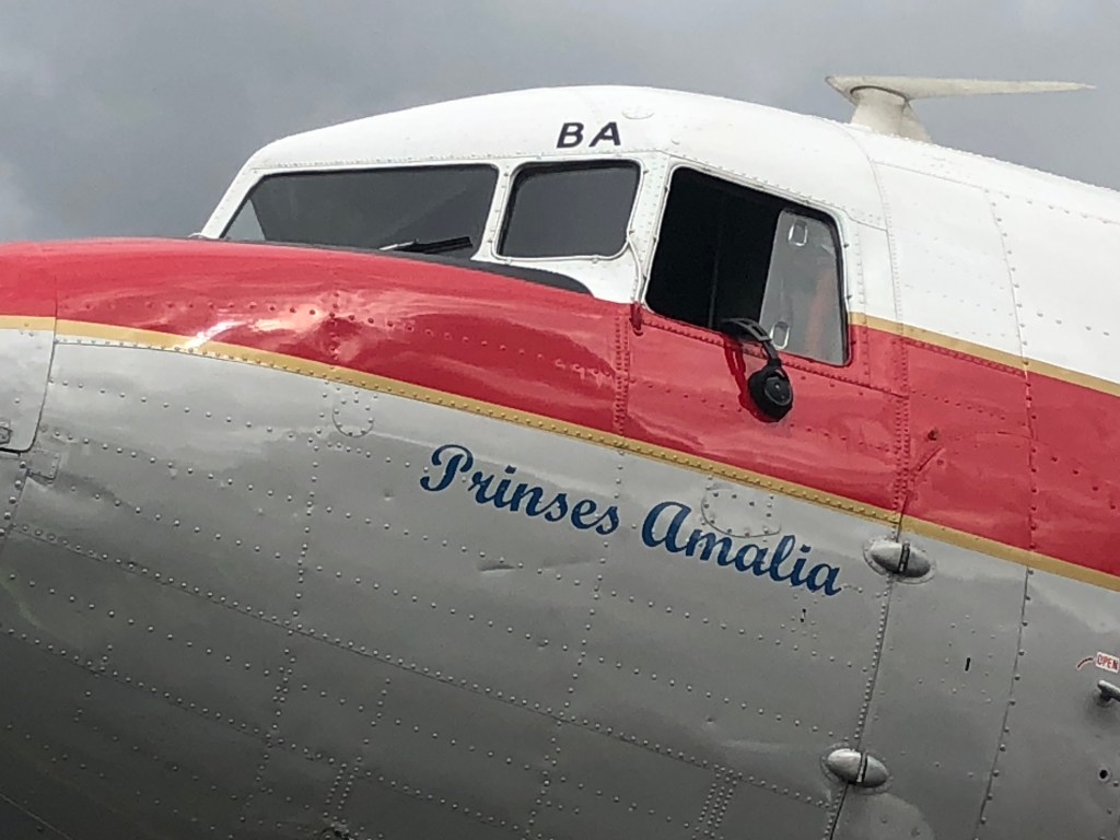 One of those PH-PBA. Built as a C-47 in January 1944 with serial number 19434, she was delivered to the USAF who designated her 42-100971. On June 6 that year she played her part in the allied invasion of Europe. Departing Cottesmore shortly before midnight on the 5th, Pilot Lt. Lee Ross and four other crew members delivered a ‘stick’ of 17 paratroopers to dropzone O near Ste Mere Eglise in Normandy. At 01:57 the 17 paratroopers jump into the night. Despite a bullet passing through the fuselage that had until a few seconds earlier contained the soldiers, 42-100971 returned safely to England. She would later be involved in Operation Market Garden, her first visit to The Netherlands although she didn’t land. Further paratroop dropping details over The Netherlands followed along with glider towing duties. On September 27 1944 she landed in The Netherlands for the first time. After the war she was acquired by HRH Prince Bernhard, a keen aviator and the consort of Princess Juliana, the future queen of The Netherlands. She was given the civilian registration PH-PBA and has remained on The Netherlands register ever since, seeing service with the Dutch Government, Dutch CAA and then the Prince Bernhard Alpha Foundation. Loaned to the Dutch Dakota Association and supported by Dutch airline KLM until 2016, PH-PBA is now licensed to fly 18 passengers on pleasure flights which, Covid break aside, it has been doing on spring, summer and autumn weekends for several years under the guise of DDA Classic Airlines.