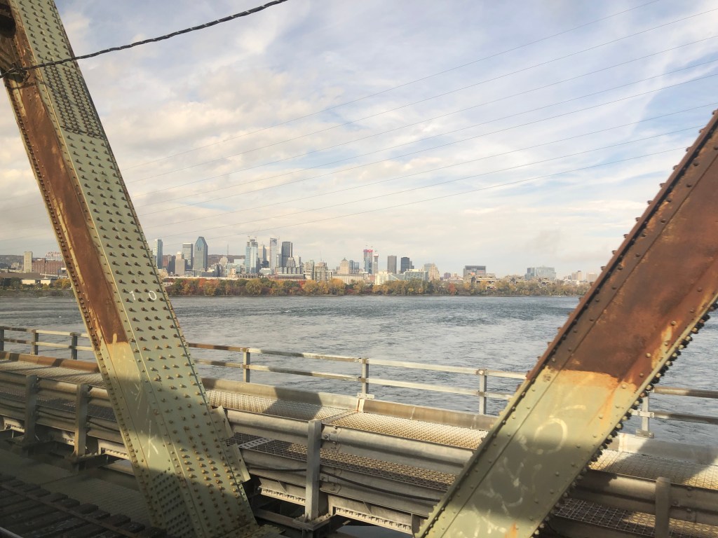 Eventually it was time for bed. The cabin had been transferred to night mode by the car attendant. It wasn’t the comfiest of beds. I found I could only sleep on my right hand side otherwise I was likely to fall out. The train rattles, rolls and is quite noisy but despite this I slept very well. That might have been down to medication I was taking for a cold I’d developed just as I was setting out for Canada a couple of days earlier. If it was the Canadian version of Night Nurse that resulted in me sleeping like a log then I’m mightily impressed. I woke up as the province of Quebec was passing outside, not that I could see much of it due to the morning mist. The clocks had also gone back an hour as I crossed into the second of five time zones on this trip. The en-suite was most welcome and fresh as a daisy I headed for breakfast. This is done on a first come, first served basis but I walked straight in. Breakfast is a big affair in Canada. Even I, who has a healthy appetite, couldn’t manage it all. Eventually the mist burnt off to reveal flat farmland and trees that were somehow even more spectacular than those I’d seen the previous day. Eventually we found ourselves in the suburbs of Montreal and crossing the mighty St Lawrence River, we pulled into Montreal Central Station, arriving an hour late just shy of 11am local time. This was a bit of a shame as I had hoped to get myself on the 11am train to Toronto but it was pulling out of the adjacent platform as I headed to the main concourse.
