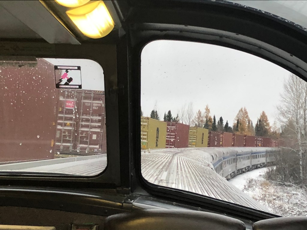 So, the sights, people, food and drink were great. Were there any downsides? Well yes, sleep on board a train is not the easiest. My previous experience was on the Caledonian Sleeper and I didn’t find it easy then, despite being upgraded to the best accommodation on the train. Trains are noisy, rattly and bounce around a lot. I shouldn’t be surprised at this but during the day you tend not to notice. Lying in your bed at night trying to get to sleep you do. Having said that, only one of the five nights I spent on the two trains was particularly bad. It is the price you have to pay for the full experience. Another thing to consider is that whilst tourists make up the bulk of the passengers, this is not a tourist train. The scenic highlight is, of course, the Rockies yet we passed through a good part of it at night. Then we stopped in Jasper for several hours whilst it was closed. If the Rockies is your reason for going on this train, consider The Rocky Mountaineer. That is a tourist train and is scheduled to run in daylight hours and any night stops are spent in hotels on the way. However, it wasn’t just about the Rockies for me, it was about the entire journey from Atlantic to Pacific and for that I can have no complaints. I loved it.