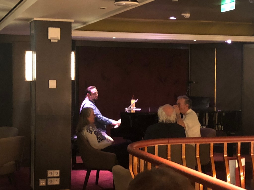What do they manage to squeeze into their 58,250 tonnes? 554 cabins for a start. Around a quarter of those are for single occupancy which is a far higher ratio than other cruise lines which once again reflects the elderly clientele. There are five dining rooms: The Main Dining Room, the slightly less formal Grill and three speciality restaurants. The Club by Jools is a steakhouse under the patronage of Jools Holland, East to West is Asian cuisine and Coast to Coast which specialises in seafood. There was no supplement to use the speciality restaurants though for our short cruise they limited passengers to just one visit to one of them. We somehow managed to blag our way into two though, the only one we missed was Coast to Coast, much to mum’s disappointment as she rather fancied the lobster. Whilst you needed a reservation in the speciality restaurants, it was open dining in the others so no set sittings to worry about. The longest we had to wait was about two minutes. There are four different bars including the large Britannia Lounge at the pointy end of the ship (see, I told you I knew all the nautical terms). A lot of the entertainment takes place there including the daily quiz which we so nearly won one evening, losing out on a tie break. We would have won it had we not ‘checked’ an answer which only goes to show that bending the rules doesn’t always pay. The Club by Jools aptly becomes a piano bar after dinner is over and occasionally the pianist is Jools himself. Not on our cruise though, we had the equally impressive Zoltan to tickle the ivories. The Living Room is near the hub of the ship where you could sip a pina colada to the sounds of a classical four piece or some light jazz by a three piece who were forever telling us that they loved jazz. We didn’t frequent the South Cape Bar which was the fourth drinking establishment on the ship. The Playhouse Theatre could seat 444 people and held shows every evening either by the ship’s resident entertainment crew or visiting acts. Other things took place there such as lectures in the afternoon and it also served as the rendezvous point for the shore excursions. Up on deck there were more than enough sun loungers, something not all cruise lines can claim, a swimming pool filled with warm, fresh water and a couple of spa pools which were positively steaming. There is a bar there too with waiters bringing drinks directly to your sun lounger so no need to do the long walk of a few yards to get it yourself. There’s a few games you can play like table tennis, darts and the cruise line favourite, quoits, and if you are feeling fit, four times round the promenade deck is a mile. To complete the ship tour, there’s a couple of shops near the reception, a library for those who fancy some peace and quiet, a gym, a hairdressers and a spa. The hairdresser and the spa require additional payment but apart from some of the more expensive drinks, everything else on board is free, including the WiFi. Or, to be more precise, included in the price. Saga cruises aren’t the cheapest but you do get a lot for your money. We bought a bottle of Champagne to celebrate a special occasion and that was the only thing that we were charged for on disembarkation and that was only £30 which seemed more of a supermarket price than what you might find in a bar or restaurant.