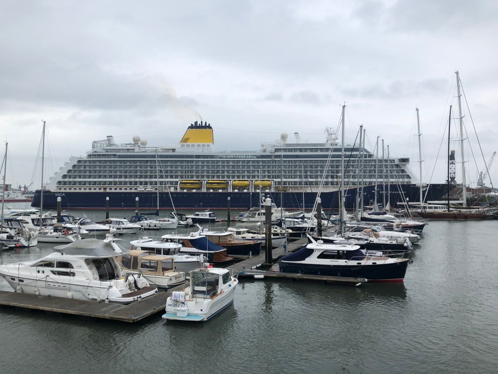 How did it come to this? It should have been a year earlier as it happens. For the past few years my sister Jill and I have taken our mum away for a few days. Jill has in fact gone further and taken mum away herself. Those trips have been with Saga on both river and sea cruises. The fact that Saga look after the oldies was a big selling point for them, as was the travel cheap insurance that was an optional-but-you’d-be-mad-not-to-take-it extra. Mum is, in her own words, getting on a bit and has a number of medical issues that make normal travel insurance prohibitively expensive. Last year I decided to lose my Saga virginity by joining mum and Jill on a Rhine river cruise. Sadly, ten days before we were due to travel I came down with a dose of the Covid and as soon as Saga found out, they immediately refunded our money and strictly forbade us from setting foot within a hundred miles of their boat. I may be exaggerating a bit but it was quite obvious they were shit-scared of an outbreak on a boat full of elderly people with assorted levels of morbidity. My symptoms were mild, I’d have been over it by the time we were due to board but we weren’t welcome any more so that was that. We ended up spending a few days in Stratford-upon-Avon which was very nice, if a little lacking in German castles. A few months later we were looking to book this year’s trip. We went back to Saga and discovered a five night cruise on one of their two new ’boutique’ cruise ships, the Spirit of Discovery. It wasn’t the most exciting of itineraries as we would barely leave the English Channel but the cruise itself is the holiday, the ports of call are just a bonus. We booked it.